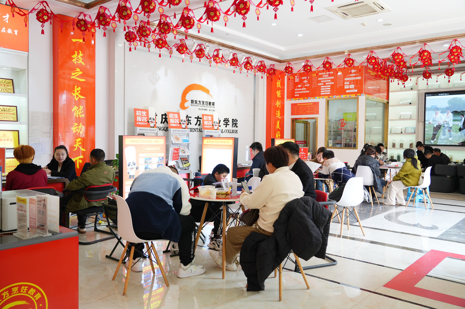 2026年春季,重庆新东方职业学校报名咨询中心迎来了一波又一波的学生与家长。尽管还在过年期间,但许多有远见的家庭已经提前行动起来,为孩子规划未来的技能成才之路。
