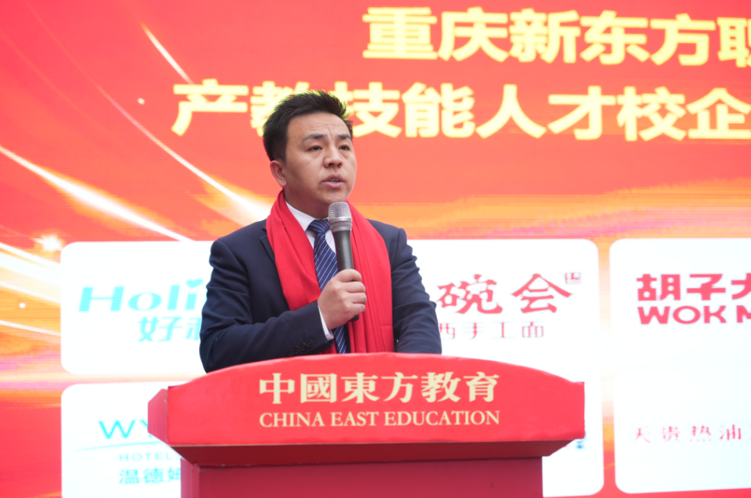 重庆新东方职业学校渝北校区负责人汪强强主任在讲话中强调,“职业教育前景广阔、大有可为”。学校坚持以“校企联合办学”为突破口,紧跟区域经济与行业发展需求,开设了中餐、西点、形象设计与时尚造型等热门专业,并与数百家知名企业深度合作。通过共建实训基地、定向培养、企业名师授课等方式,学校致力于培养“技能与素养并重”的实用型人才,确保学生所学与市场所需无缝对接,真正实现“真技能、好就业、好未来”。