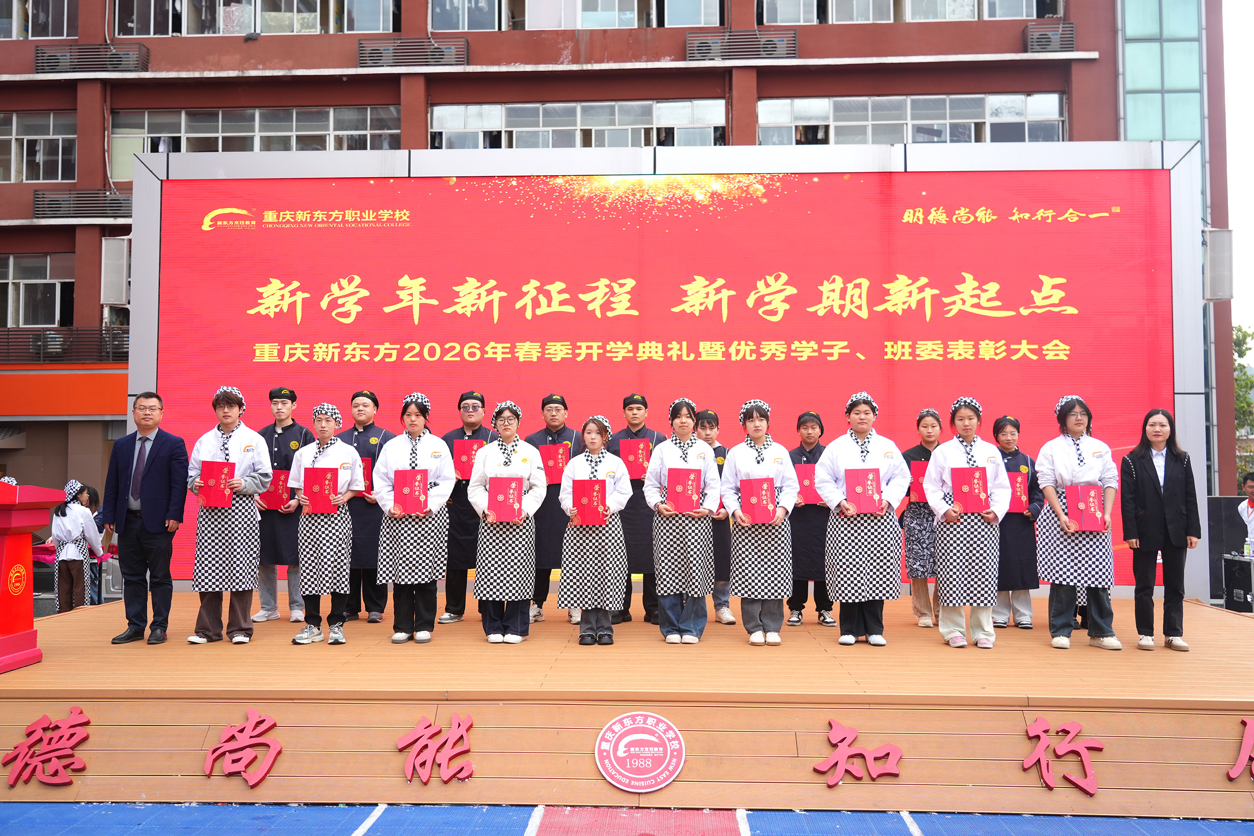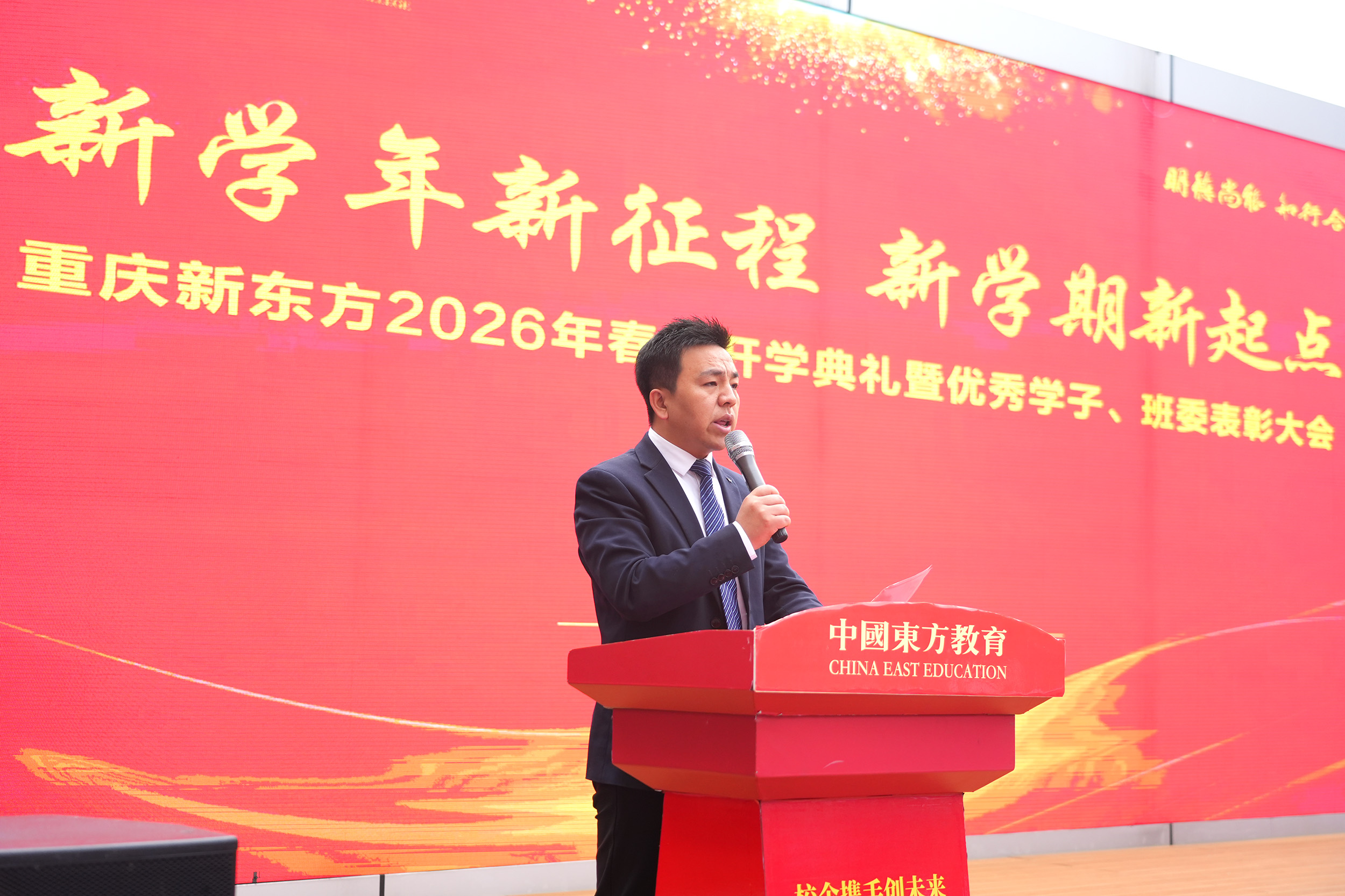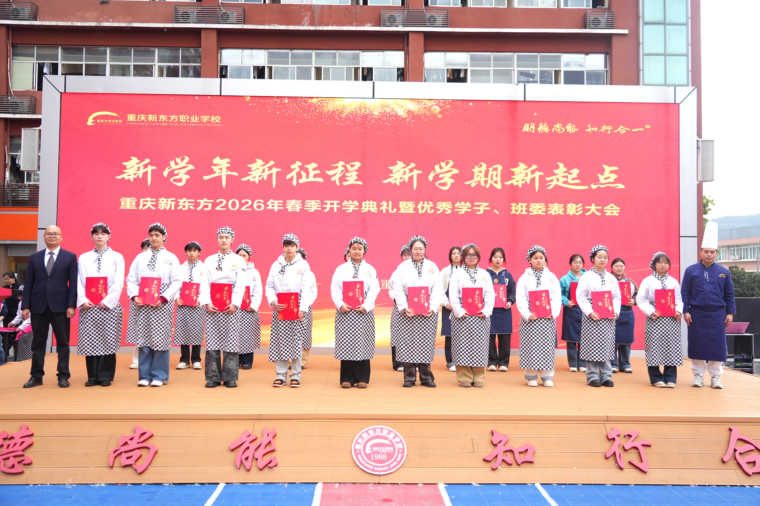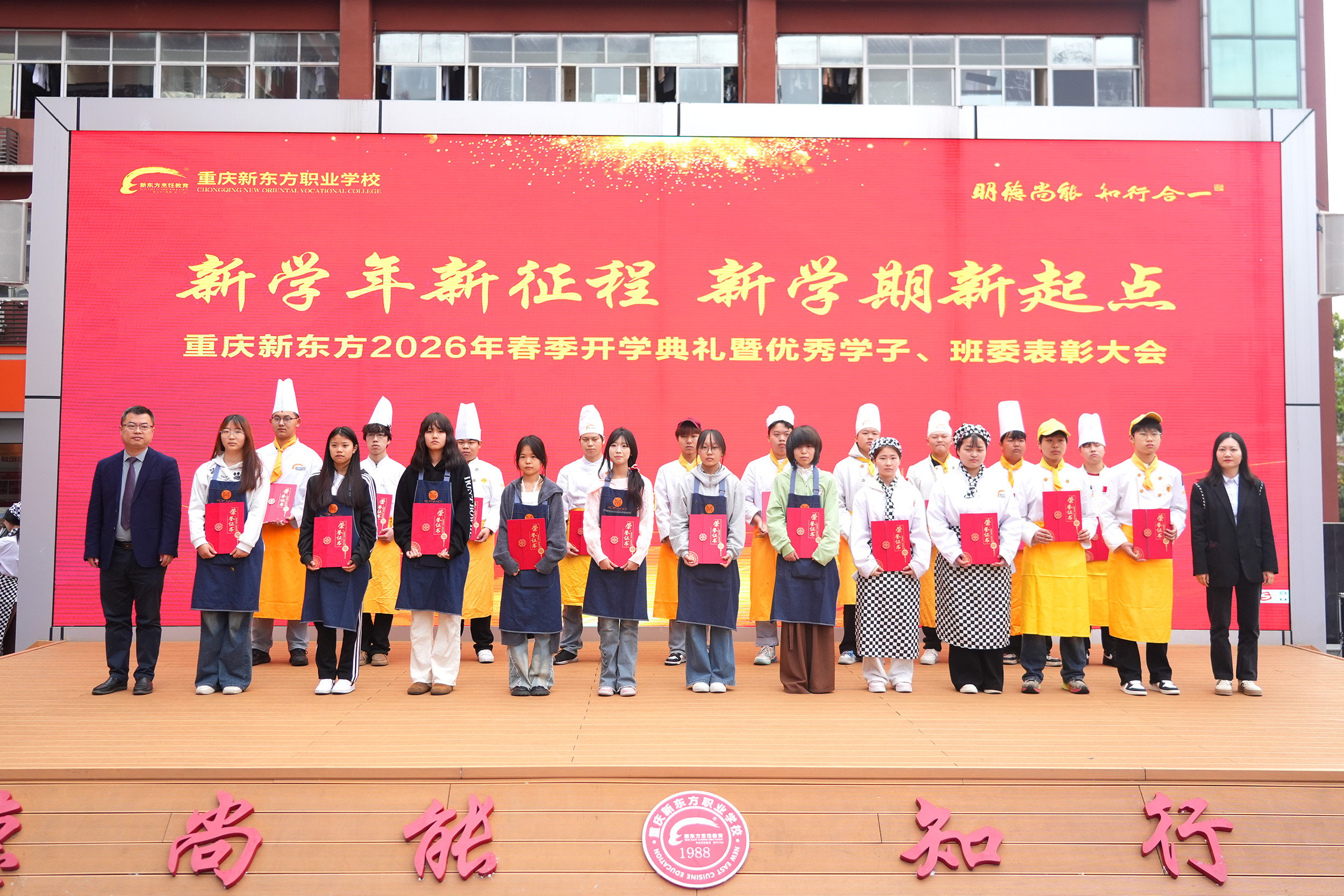 春风送暖,万象更新。3月12日,重庆新东方职业学校2026年春季开学典礼暨优秀学子、班委表彰大会在渝北校区隆重举行。全校师生齐聚一堂,共同开启新学期的崭新征程,以昂扬的姿态迎接充满希望与挑战的新学年。