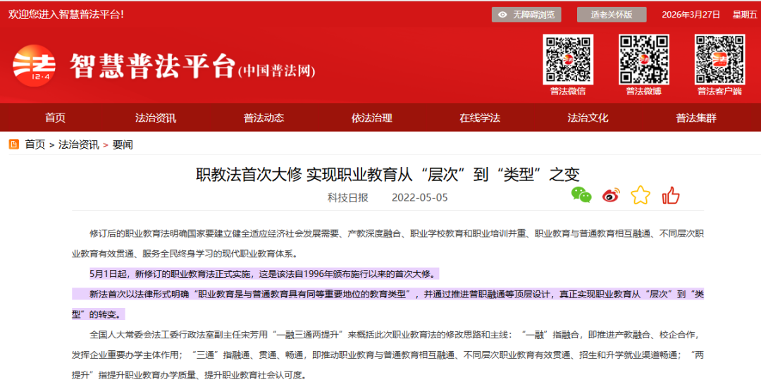 政策定调:职业教育与普通教育同等重要