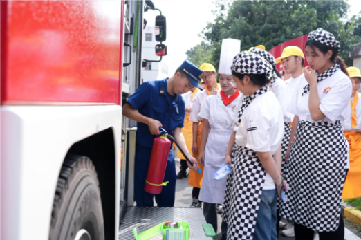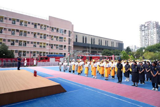 随着消防警报响起,全校师生按照预定疏散路线快速有序撤离。消防专业人员现场演示灭火器使用方法,指导师生进行实操演练,让大家掌握了"一提、二拔、三握、四压"的灭火要领,提升了应对突发火情的实战能力。