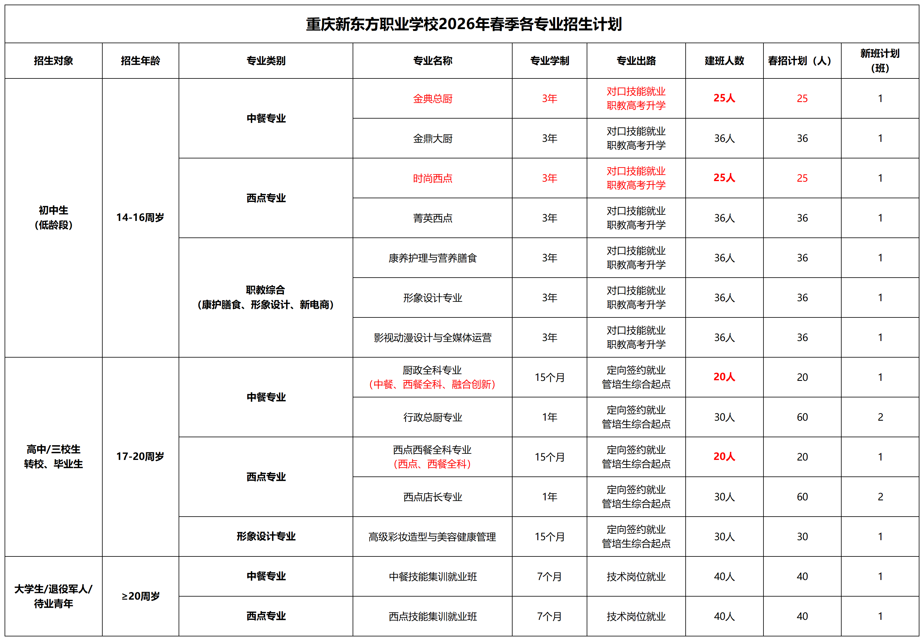 重庆新东方2026年春季报名通道已经开启,早选择、早报名、早受益。各专业都十分抢手,热门专业的名额不多,如果要报名,现在要抓紧了!