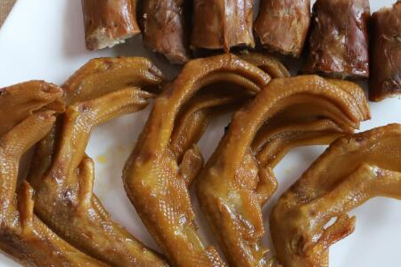 4、鸭肉类的食材,加排草10g、陈皮20g、孜然20g、白芷60g。