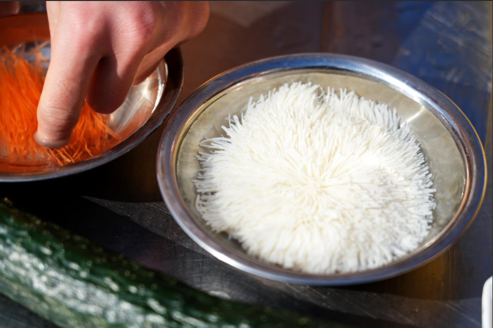 银针丝环节,胡萝卜在选手刀下化作细可穿针的均匀发丝;菱形片考核中,每片食材的厚薄一致彰显扎实功底。