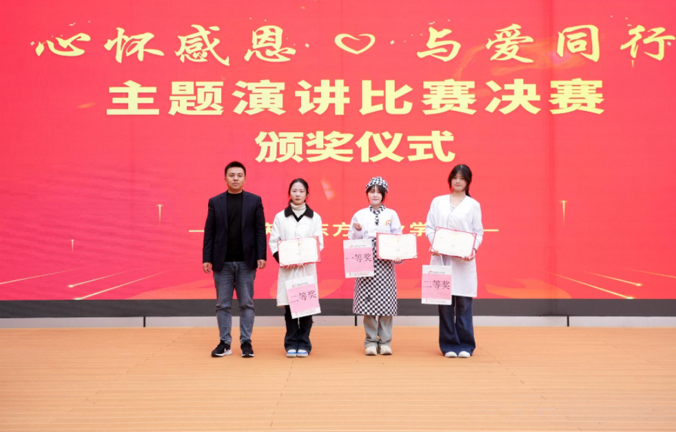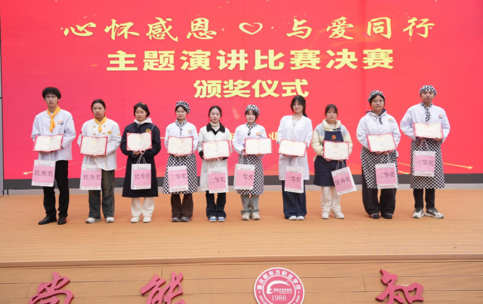 声音传递感恩,表达绽放光彩。11月25日,重庆新东方职业学校"心怀感恩·与爱同行"主题演讲比赛决赛在校园内隆重举行。这场充满温情与感动的赛事,为学子们提供了展示自我、表达感恩的舞台,展现了新时代职教学子的精神风貌。