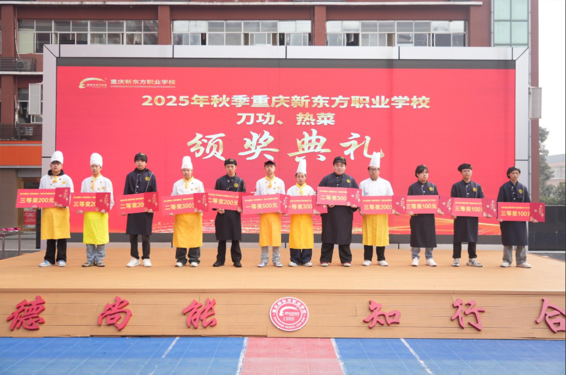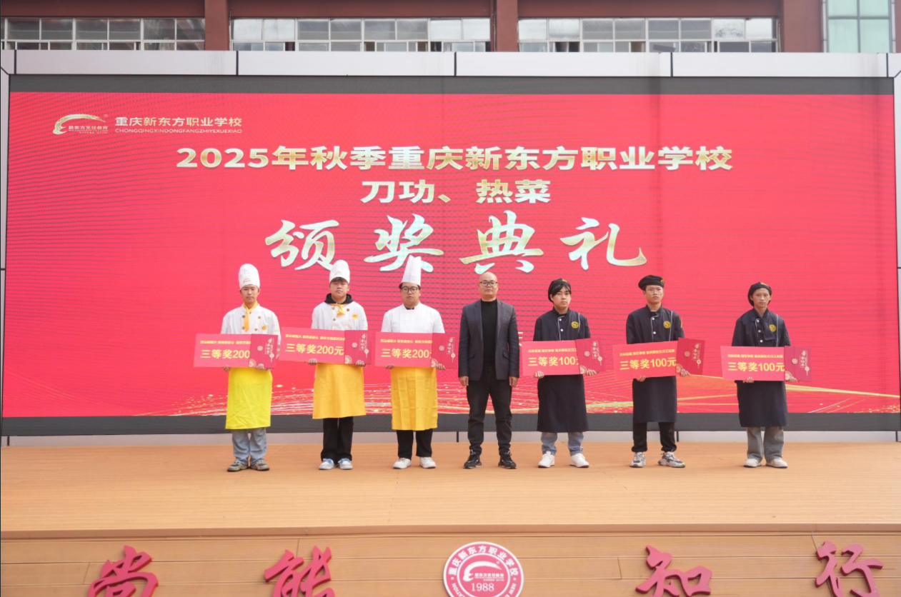 刀光流转间见真章,火候掌控中显匠心。我们齐聚一堂,共同见证重庆新东方职业学校刀工、热菜比赛的荣耀时刻。在这场展现烹饪技艺与专业精神的盛会中,每一位学子都以刀为笔,以食材为卷,在砧板上谱写了属于自己的青春华章。
