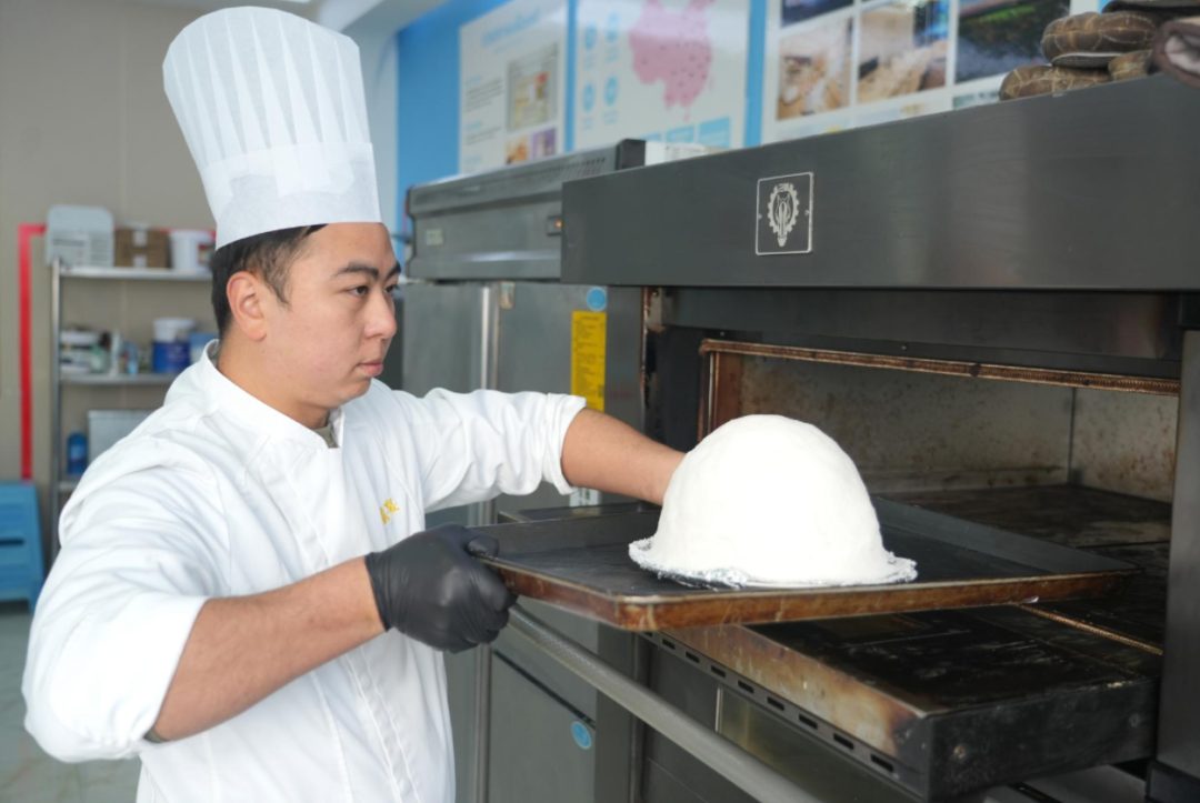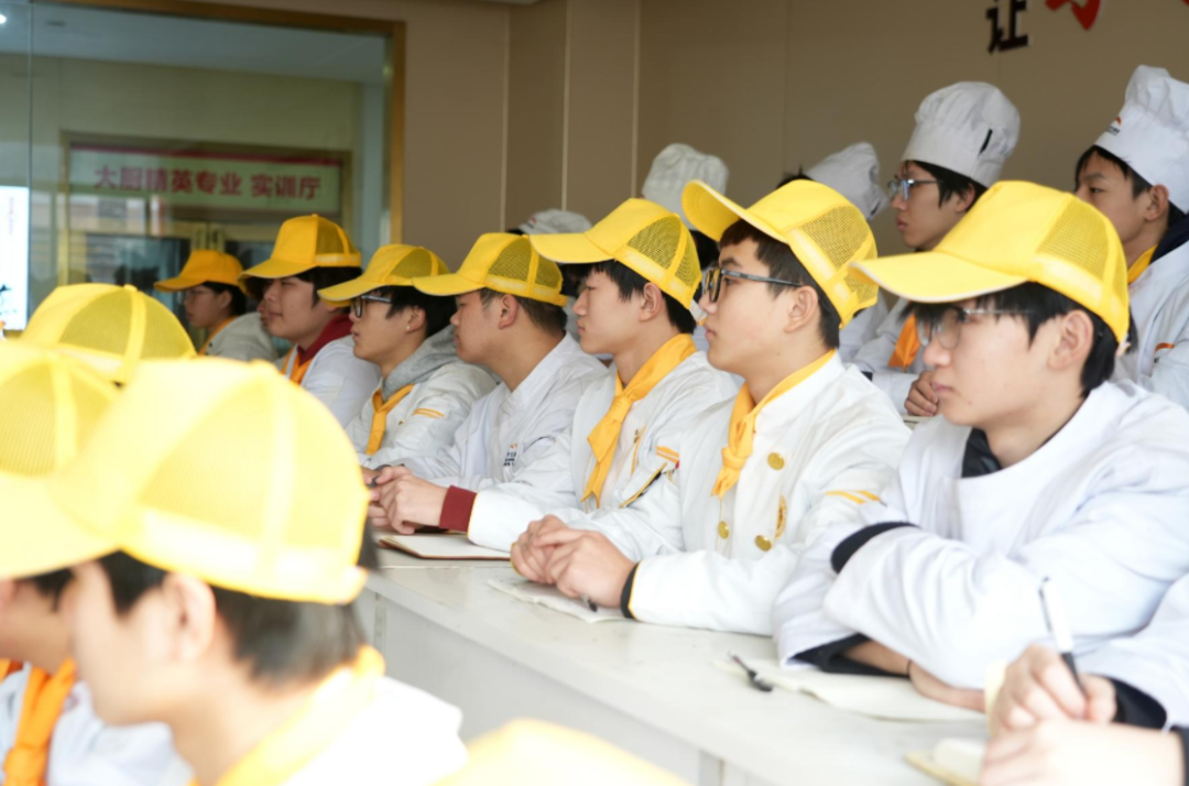 教学的魅力,在于理论与实践的碰撞,更在于“手感”与“火候”的言传身教。聂总厨助手移步至大型烤箱前,演示一道经典菜品的烘烤工艺。学生们围拢观摩,看他如何赋予面团美妙的生命。窗外阳光洒入,照在蓝白相间的文化墙上,也照在年轻学子们求知若渴的脸庞上。这不仅仅是技术的传递,更是对厨者匠心——“严以律己,刻苦钻研”职业精神的生动诠释。
