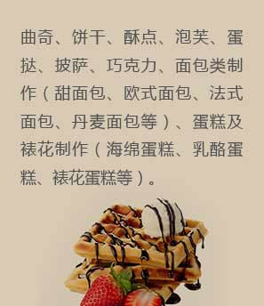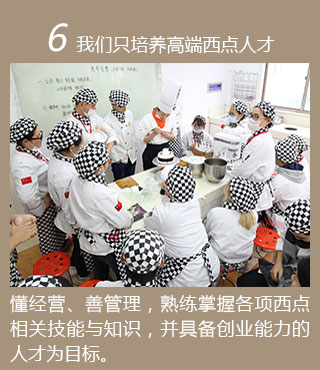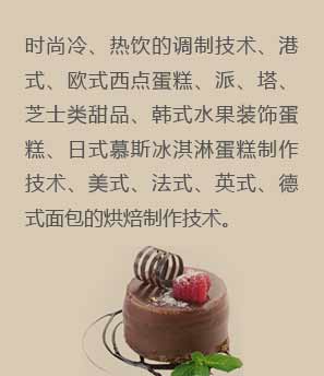 ③课程专门的教学研发,所有课程设置都与市场需求接轨,不仅能学习各种西点方面的知识,还有时尚冷热饮,以及开店方面的管理知识。
